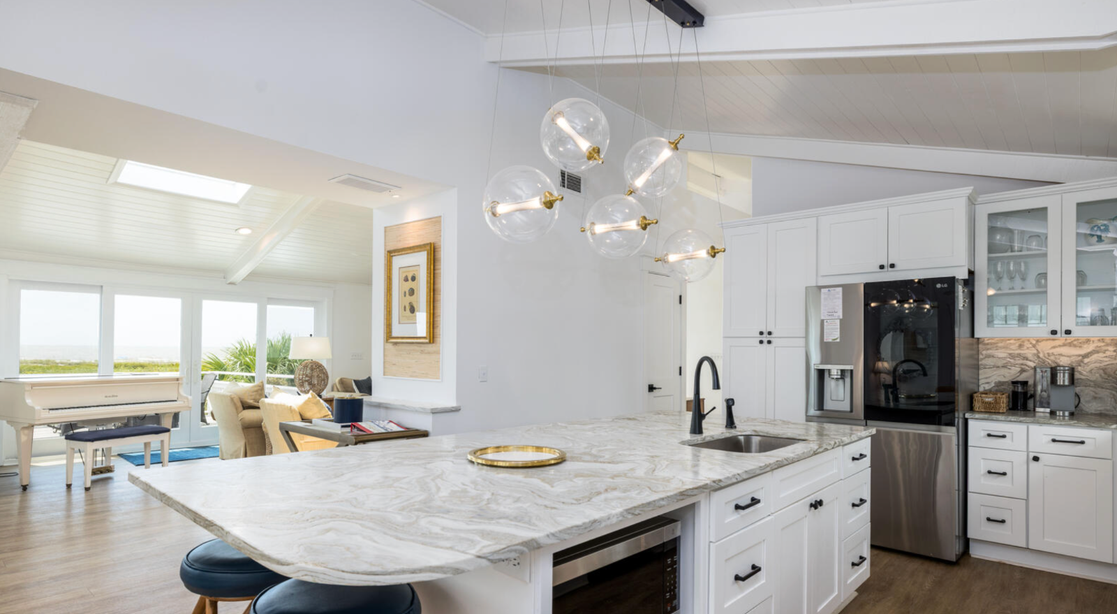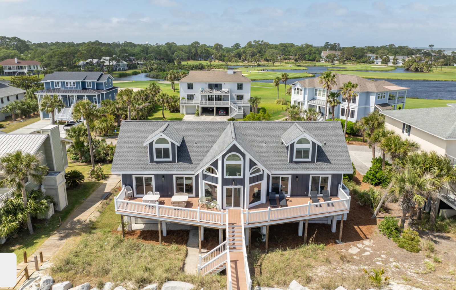 Click here to view 805 Marlin Drive - Newly renovated and perched at the end of Marlin Drive, this 5-bedroom, 5-bathroom beachfront home offers 2,700 square feet of bright, airy living space and direct access to Beach 1B. Relax with ocean views from the back porch or rinse off after a beach day in the outdoor shower. With a fully updated kitchen, six parking spots, and a 4-seat golf cart included, this home is perfect for larger families. You’ll receive up to 14 guest cards for full resort access.
