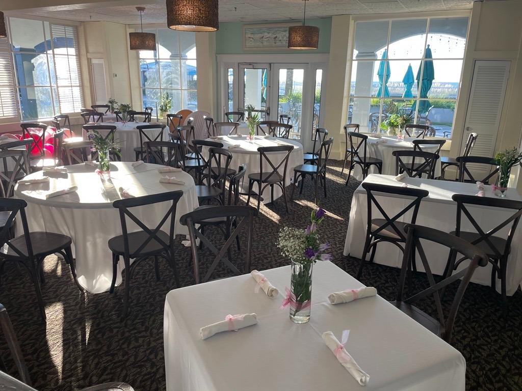 The Ocean View Lounge is a superior venue space located on the top floor of our Beach Club Complex. It offers unparalleled views of the beach, while being indoors. This space holds about 125-150 guests.