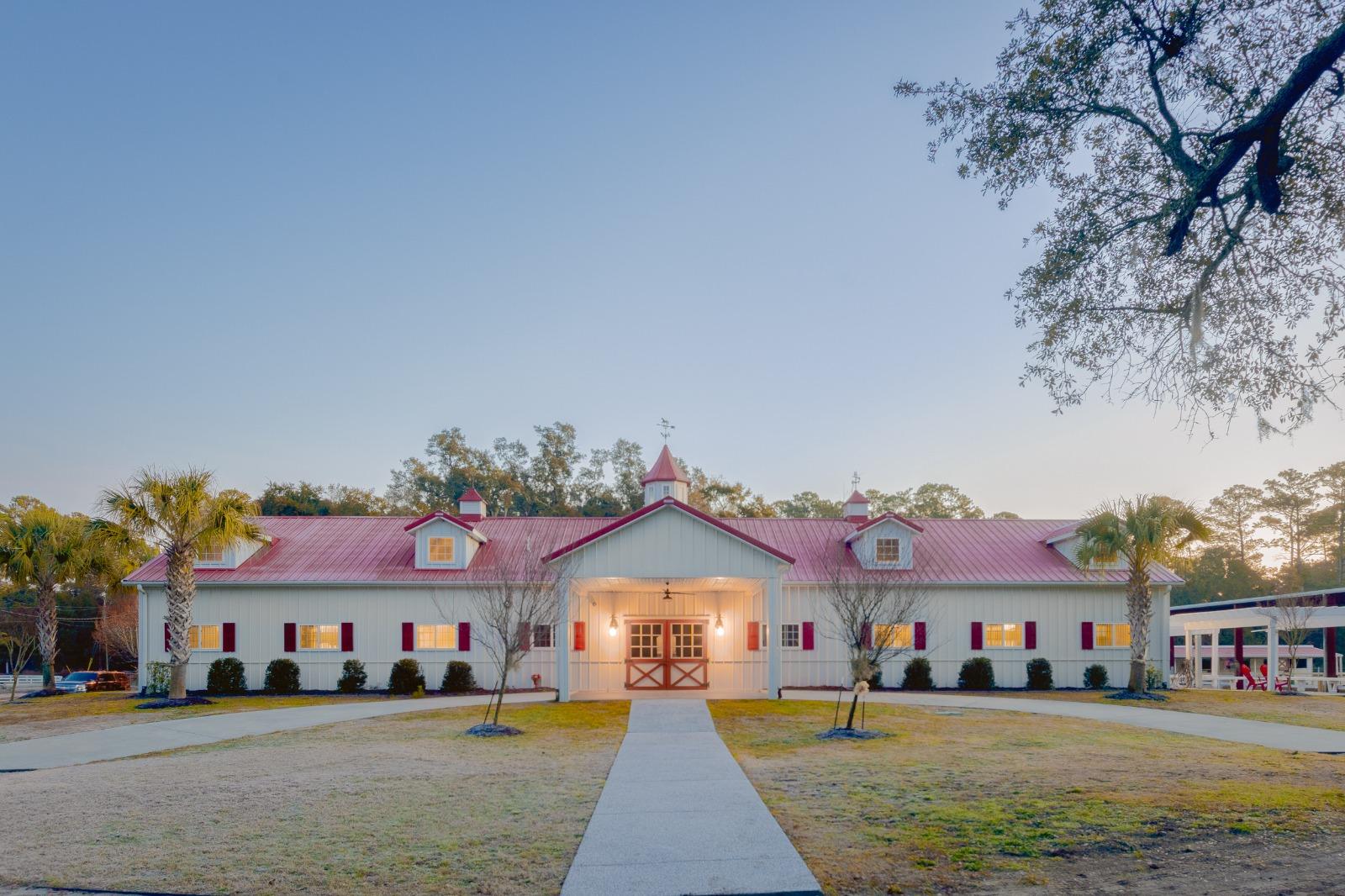 Camelot Farms is a luxury Farm Style Venue that is located just a few miles off of the island. It is the perfect space for large groups and can hold an unlimited number of guests.