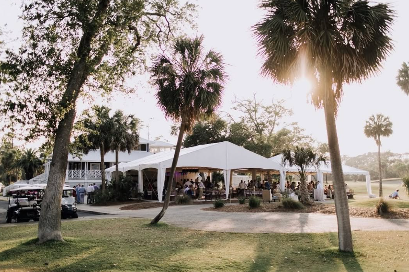 The 12th Hole Tee Box is a unique venue space that offers one of the most stunning Marshland Views. This space holds around 200 guests.