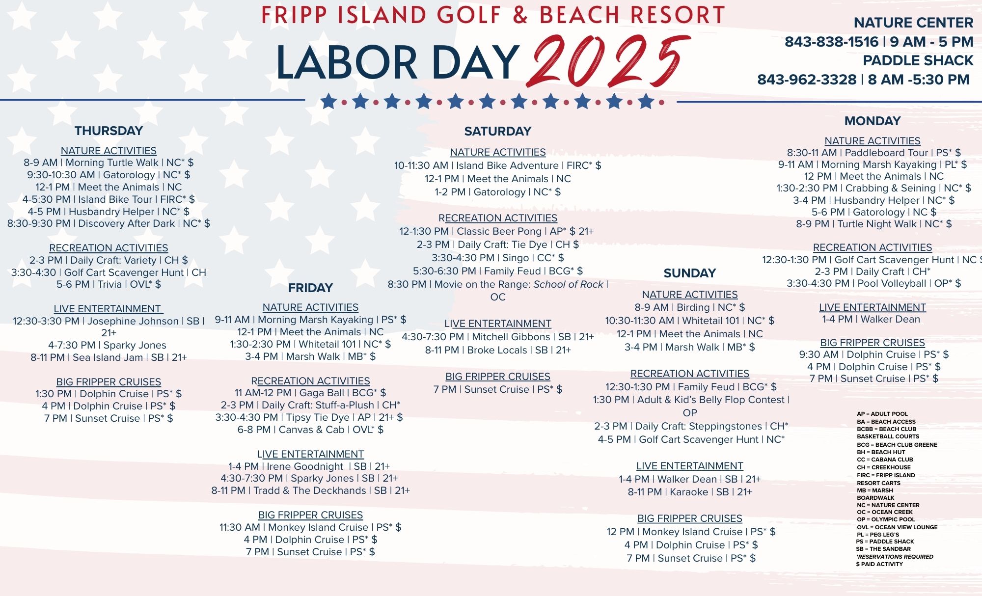 The 4th of July is Fripp's biggest celebration, with a calendar packed full of events. From Giant Beer Pong to the Sand Sculpture Competition, there’s something for everyone. Don't miss the Golf Cart Parade, the “Salute from the Shore” jet flyover, and the grand fireworks show to end the day in patriotic style!