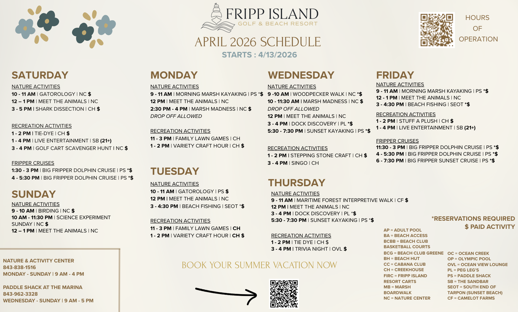 The Paddle Shack is located at The Fripp Island Marina between Bonito Boathouse and Peg Legs. Call Paddle Shack Rentals and Excursions at 843.838.1518 to book your next cruise.