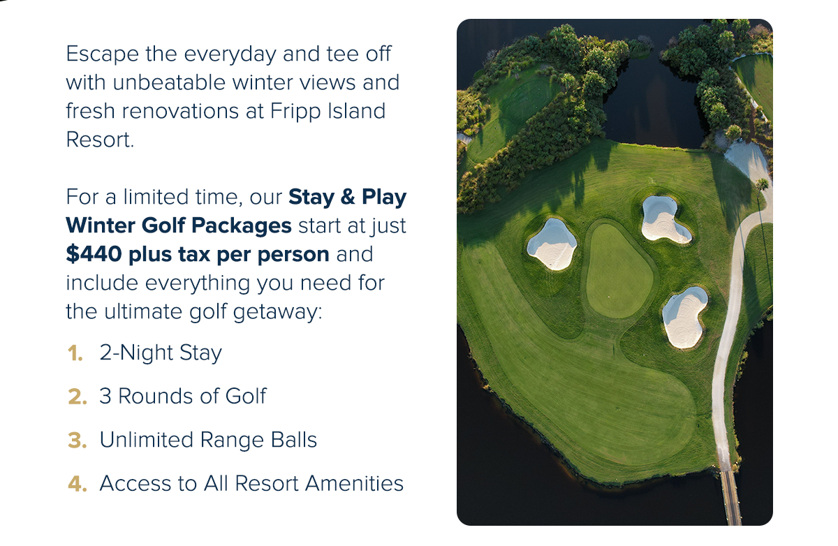 *Valid for stays December 1, 2025 - February 28, 2026 only. Pricing based on double occupancy. Taxes not included. Offer valid at participating homes only and is subject to availability. Other restrictions and blackout dates may apply. For questions or more information, please contact Maddy Zimmermann at mzimmermann@frippislandresort.com or 877-916-3601.